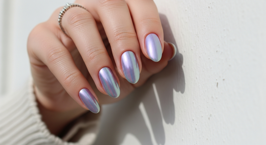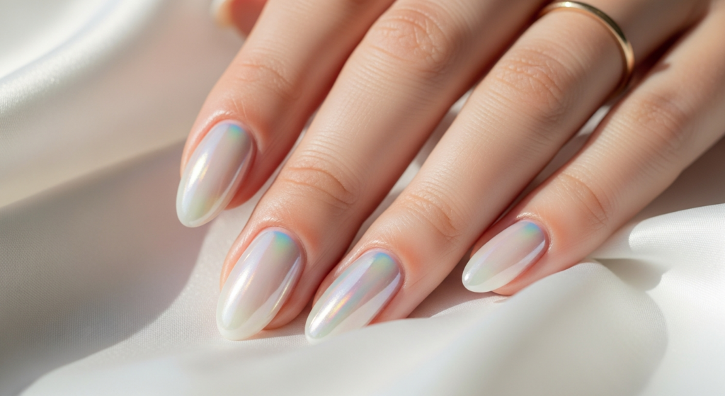 12. The Pearlescent Pastel Gel Nail — Iridescent, Season-Defying Beauty