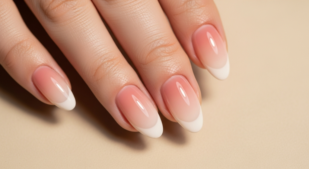 The result is a nail that appears longer, softer, and more natural than either a full-color gel or a traditional French tip. The gradient reads as a perfected version of the natural nail — as though a highly skilled artist improved on what nature provided.