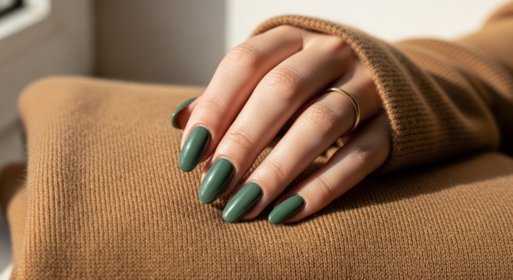 Styling tip: Sage green gel nails create a beautiful color story when worn alongside warm earth-tone outfits and warm metallic jewelry. A camel coat, a rust-toned scarf, a gold ring, and sage green nails — these four elements together create an autumn-winter color composition that is deeply satisfying and thoroughly cohesive. The nail color ties the warm palette together in a way that feels genuinely considered.