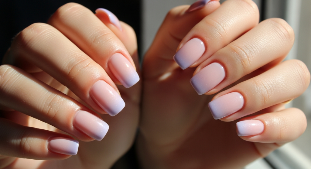Blend shades within the same color family for a subtle gradient. A glossy topcoat enhances the smooth transition.