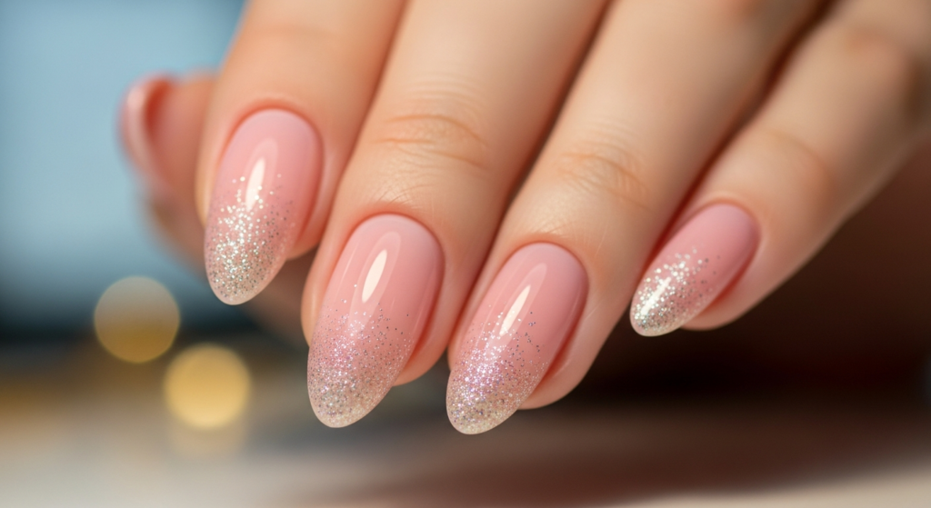 Apply glitter to tips or as a gradient fade. Choose fine shimmer over chunky glitter for a more elegant finish.