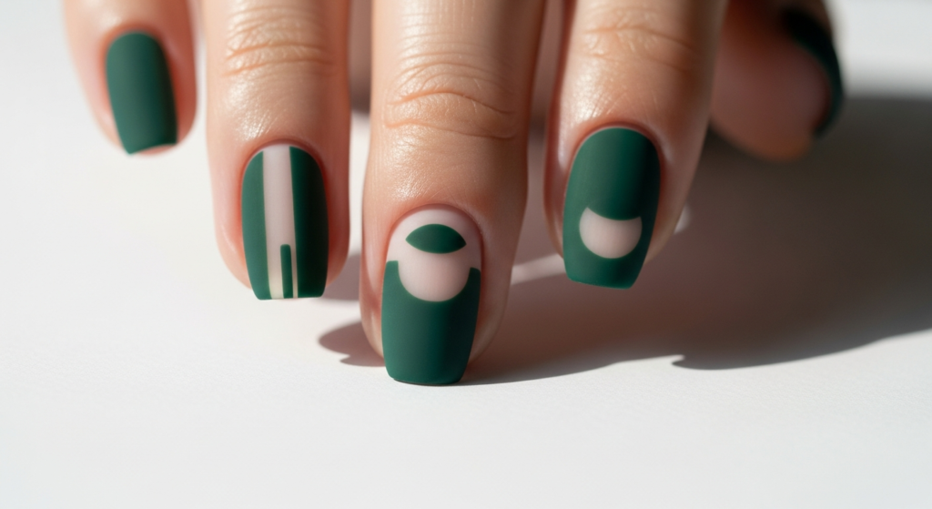 13. Negative Space Dark Green Nails