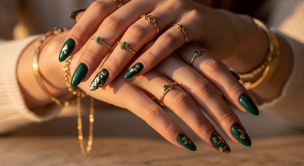 Dark green nails have quietly become a signature of refined style. Deep, earthy, and effortlessly chic, this color evokes a sense of calm luxury while still making a bold statement. It’s the perfect balance between modern trend and timeless elegance.