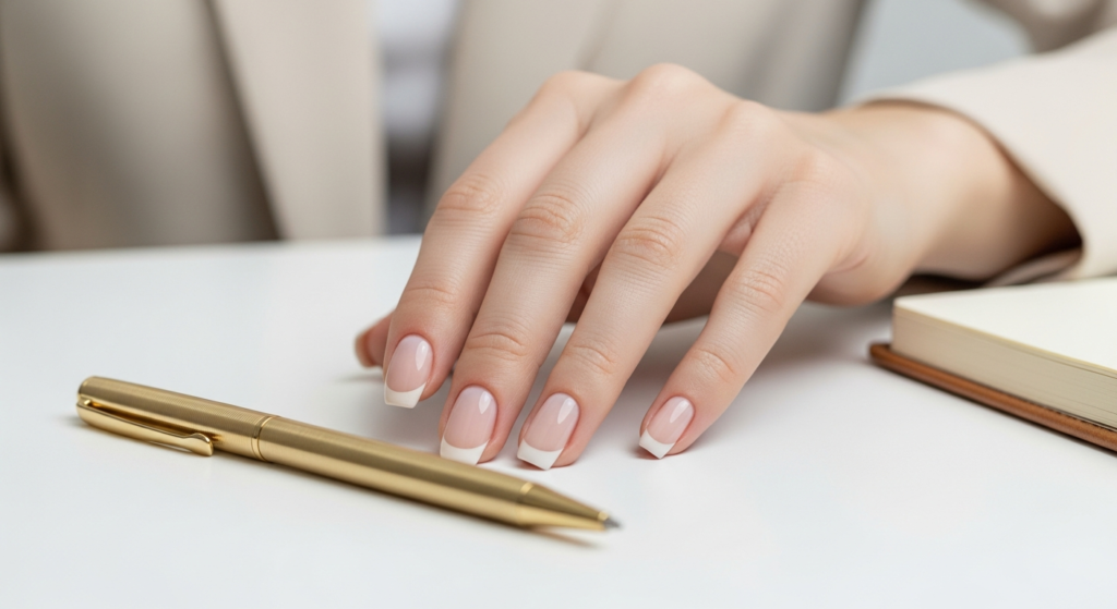 For professional environments where nail art must communicate polish rather than personality, the modern neutral French tip is the most refined and workplace-appropriate nail art available. A barely-there tip in a shade just slightly lighter or deeper than the base reads as groomed and intentional without crossing into statement territory.