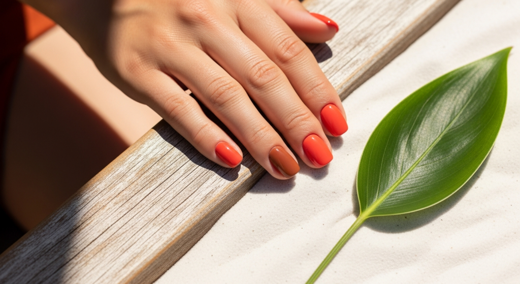 Styling Tip: Embrace the full warmth of the summer palette — terracotta, bright coral, ocean blue, sunny yellow, and vivid orange are all in season. For a holiday nail look with genuine aesthetic quality, choose two or three colours from the same warm or cool family rather than mixing across the entire spectrum. Try a terracotta base with a single bright coral accent nail and a warm sandy nude on the remaining nails — cohesive, warm, and entirely vacation-appropriate.