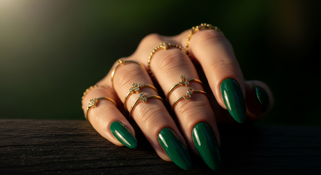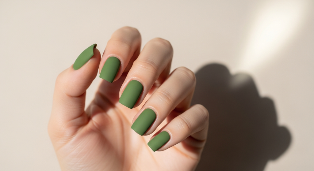 Forest green nails feel luxurious and grounded. The deep tone reflects the richness of autumn landscapes.