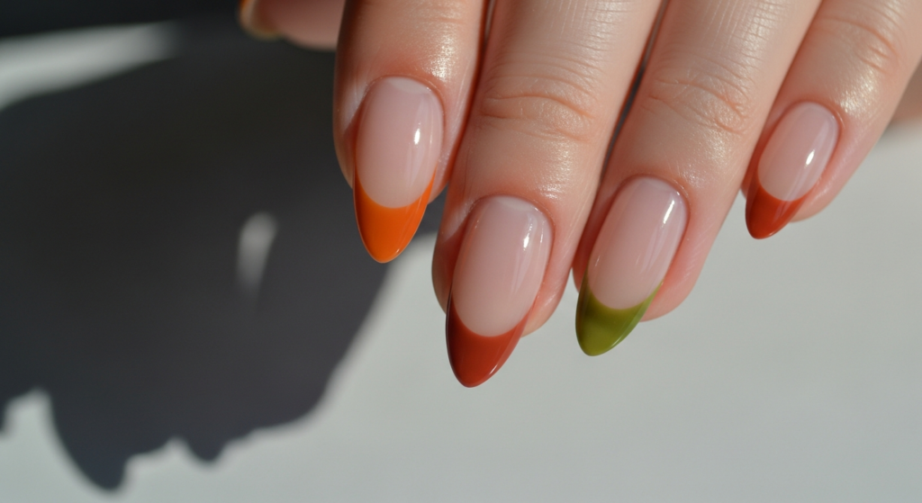 Reimagine classic French tips using autumn tones like rust, burgundy, or forest green.