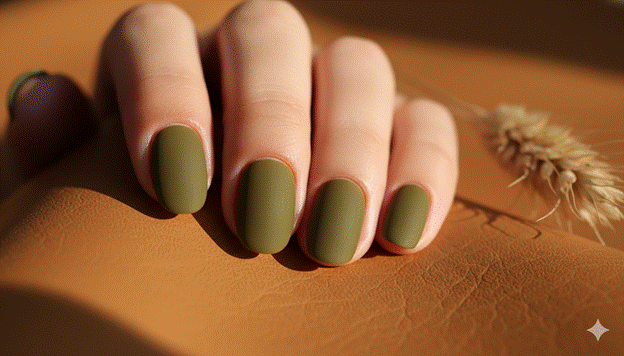 Short acrylics in deep olive green are one of 2025’s most specifically fashion-forward and most warmly directional colour choices in the short acrylic category — a colour that sits at the warm, earthy intersection of deep forest green and warm khaki, with the specific quality of aged, organic richness that references autumn foliage, military heritage, and the particular warmth of natural, clay-rich pigments. In a satin or matte finish, deep olive green on a short acrylic communicates a sophisticated, design-aware aesthetic confidence.