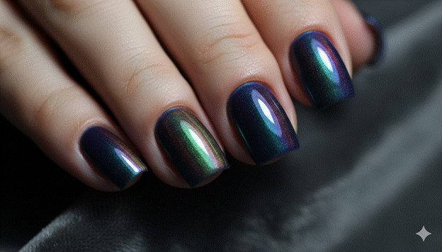 Styling Tip: Choose the base colour for a short aurora acrylic specifically based on the aurora colour register you most want to foreground. A deep midnight navy base creates the most electric blue-to-green aurora shift. A deep forest green base emphasises the green-to-gold register. A deep black base creates the most comprehensive full-spectrum aurora display with every colour register visible at maximum intensity. On a short acrylic, allow the base colour and the aurora to be the complete design statement — do not add any additional nail art, accent lines, or accessories that would compete with the aurora’s inherent visual dynamism.