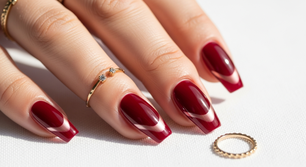 Styling Tip: On a shrimp nail shape, the French tip follows the curve of the nail’s distinctive arc rather than a straight horizontal line — this creates a uniquely beautiful, sweeping tip that reads as a design feature of genuine artistry. Choose a micro-thin tip in warm beige on a sheer ivory base for the most sophisticated and most contemporary shrimp French result. Alternatively, a deep burgundy tip on a nude base or a soft dusty rose tip on a milky pink base creates a beautifully coloured shrimp French nail with modern elegance. A glass-finish gel top coat over the curved shrimp French nail creates the most polished and most editorial result.