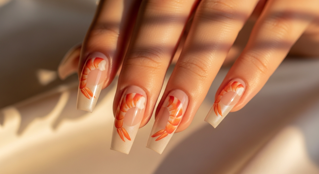 Red shrimp nails are the look that requires no occasion and no coordination — they are simply, permanently, and completely beautiful in the same timeless way that the shrimp shape itself is simply, permanently, and completely elegant.