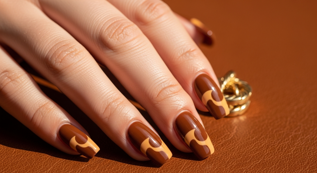 Styling Tip: Choose a chocolate brown shade with genuine golden warmth — the richness of the warm undertone is what creates the characteristic honey-glazed luminosity rather than a simple brown polish effect. Apply a chrome or opalescent powder in a warm gold tone over the chocolate brown gel base before sealing with a mirror-gloss top coat for the deepest and most beautiful glazed chocolate result. The curved surface of the shrimp shape distributes the glaze most beautifully — the arc catches warm light at multiple angles simultaneously, creating a constant, shifting warmth of extraordinary visual richness.