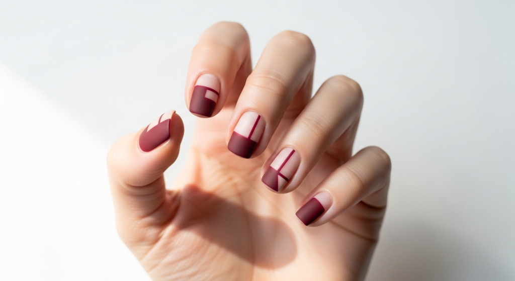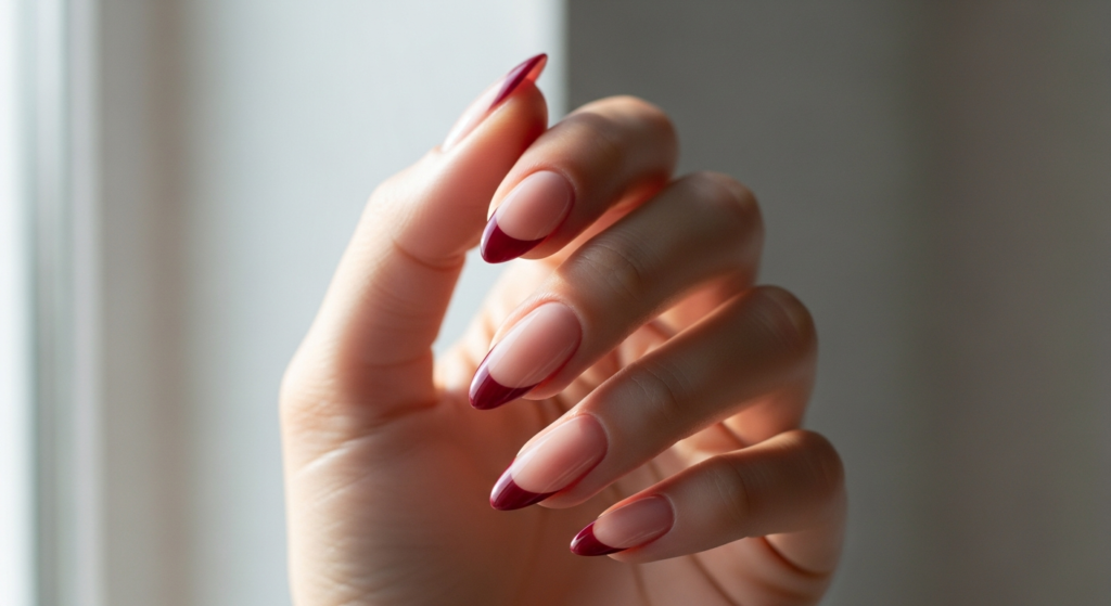 A twist on the classic French manicure, maroon tips add bold sophistication while keeping the base natural.