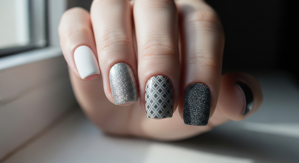 13. Elegant Monochrome Nails
