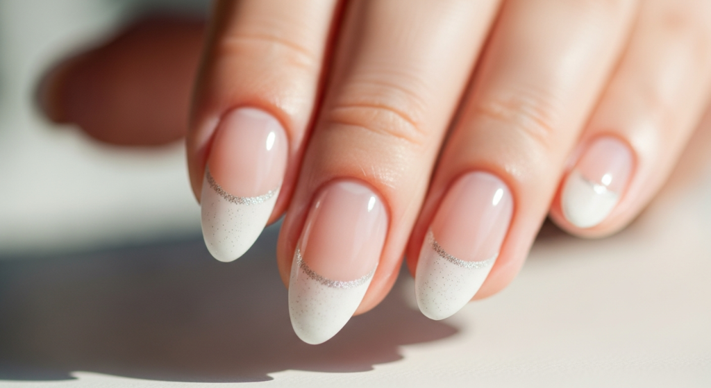 3. French Tip with Glitter Accent