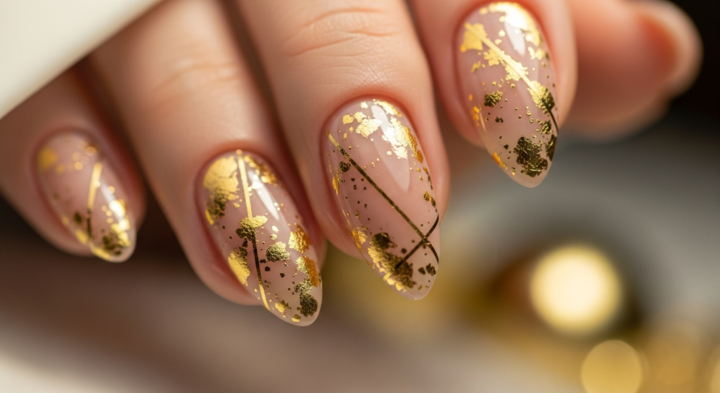 5. Gold Foil Accent Nails