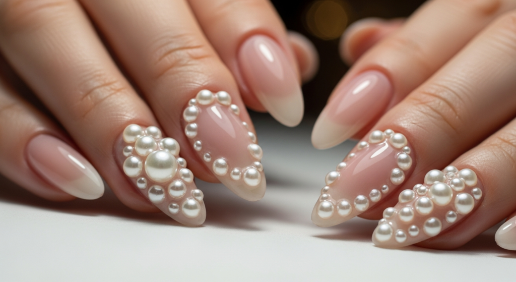 Place pearls near the cuticle or as accents for subtle elegance.
