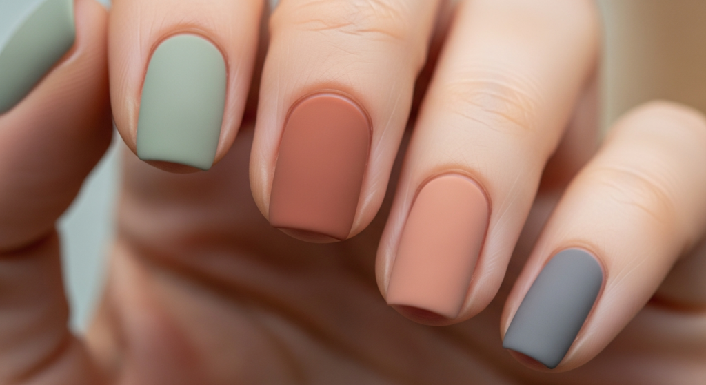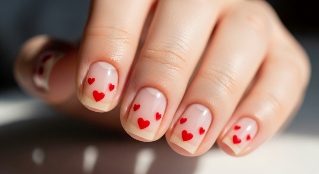 Use neutral bases, add simple designs like lines or hearts, and finish with a glossy or matte top coat.