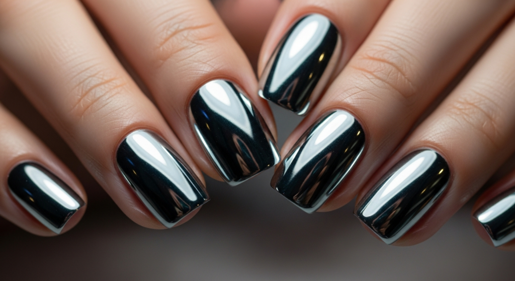 Inspired by viral beauty trends, chrome nails offer a reflective, high-shine finish.