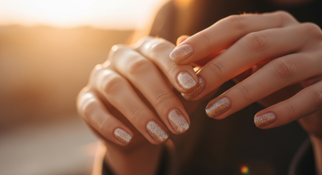 Glitter nails catch light beautifully and add a festive touch without overpowering the design.