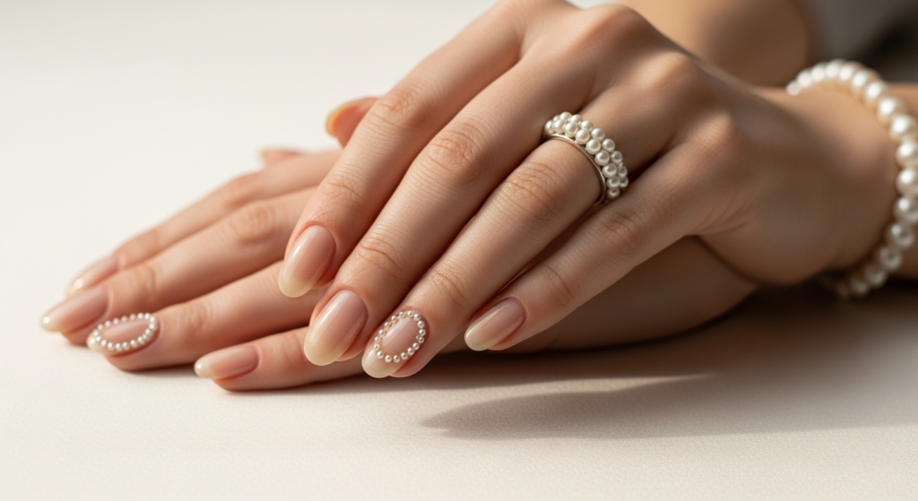 8. Pearl and Crystal Holiday Nails — Quiet, Luminous Glamour