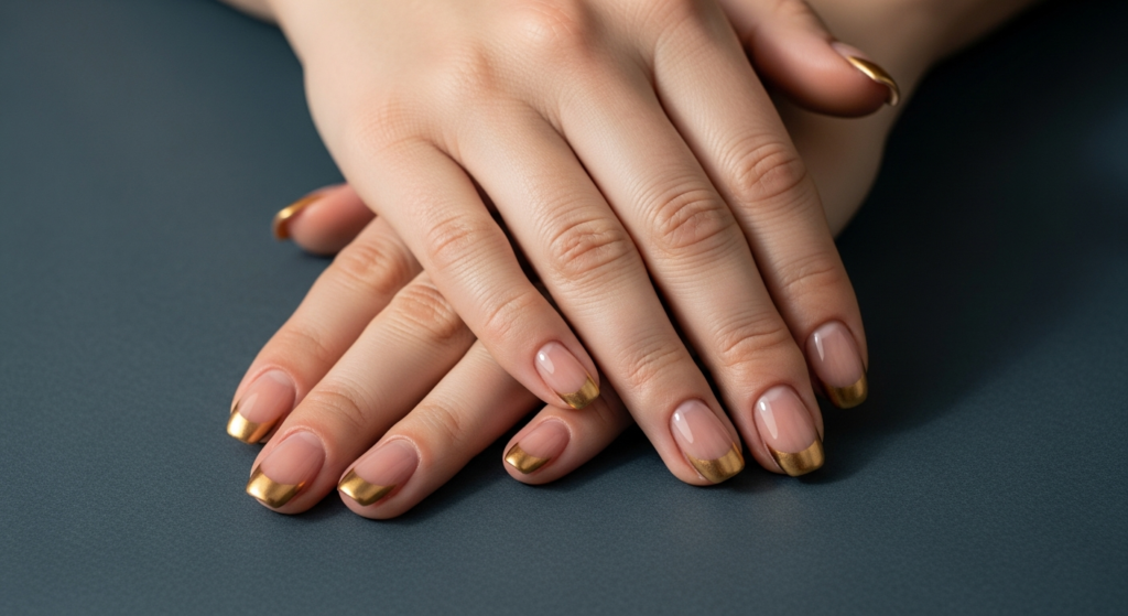 - The most viral festive French tip variations include: a gold metallic tip on a nude or sheer base; a deep red tip on an ivory base; a forest green tip on a clean nude; or a silver chrome tip on a pale milky base — each creates a distinctly different seasonal register while maintaining the French manicure’s inherent elegance.