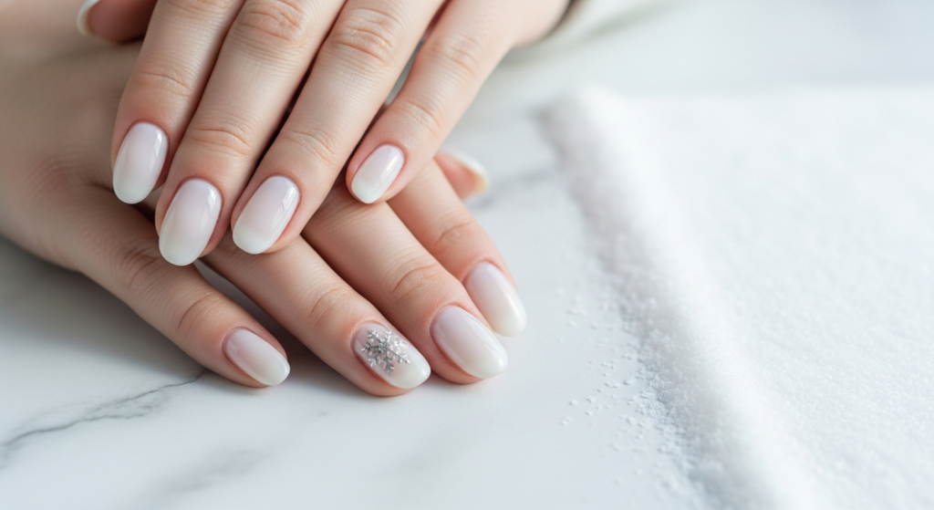 The winter white glazed xmas nail is the most quietly extraordinary festive beauty choice — the one that does not announce itself, but simply makes every hand that catches the winter light look as though it was designed to be there.