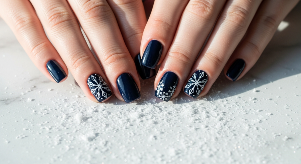 4. Snowflake Nail Art — Delicate, Wintry, and Endlessly Recreated