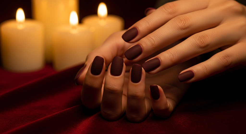 5. Velvet Burgundy Nails — Rich, Warm, and Deeply Festive