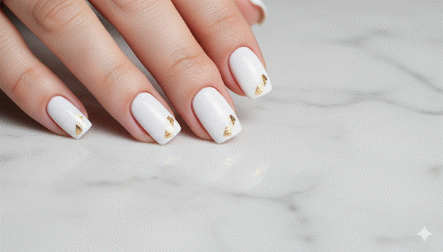 Styling Tip: Placement is the primary creative decision in the minimalist white nail with gold detail — and the most elegant placement is always the one that creates the most visual tension with the negative space surrounding it. A gold detail positioned asymmetrically — toward one corner rather than centred — creates a more dynamic, more compositionally interesting result than a centred placement. Think of the nail surface as a small canvas and the gold detail as the single mark on it — place it where a painter would place a focal point: not at the centre, but at the point that creates the most compelling visual relationship with the empty space around it.
