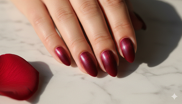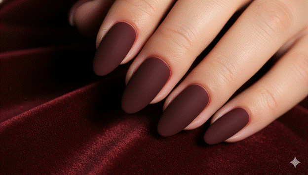 Styling Tip: The quality of the matte top coat is the most critical factor in the elegance of a deep burgundy matte nail. A premium matte top coat creates a completely even, completely smooth matte surface with no streaks, no patchy areas, and no visible texture — it appears as though the nail has been dipped in a fine velvet dust. A lower-quality matte top coat creates an uneven surface with varying levels of sheen that reads as simply unfinished rather than deliberately matte. Invest in a single quality matte top coat and apply it in a single, even stroke from cuticle to tip without overworking — a second pass over a matte top coat creates streaking.