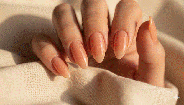 The almond nail shape in a sheer jelly finish is one of Pinterest’s most consistently elegant and most widely saved nail images — a combination of the nail shape most associated with refinement and elongation and the finish most associated with luminous, skin-enhancing naturalness. The almond’s gentle taper creates fingers that appear longer and more graceful; the sheer jelly finish creates a nail surface that appears to glow with warm, translucent colour from within.