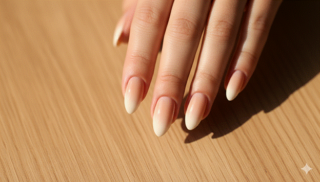 Styling Tip: The almond shape that is most universally flattering and most elegantly proportioned is one in which the taper begins at the widest point of the nail and converges to a gently rounded — not sharply pointed — tip. A tip that is too sharply pointed creates a stiletto quality that loses the almond’s characteristic refinement; a tip that is too rounded loses the elongating quality that is the almond’s primary aesthetic contribution. The correct almond tip is oval rather than round, tapered rather than pointed, and arrives at its apex without an abrupt angle on either side.