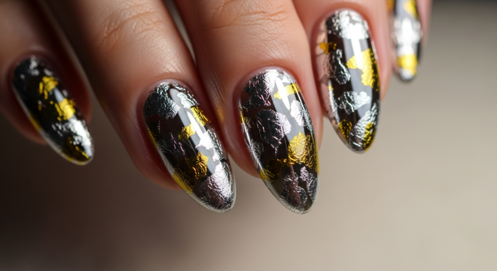 Apply metallic accents sparingly over neutral or dark bases. This contrast keeps the look elevated rather than chaotic.