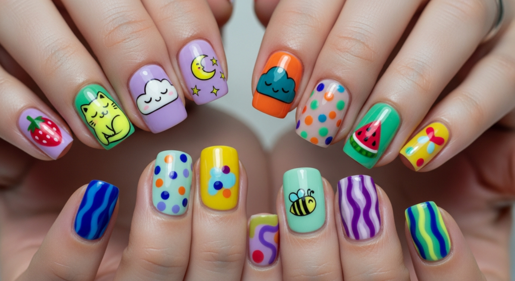 Each nail tells a different story, creating a curated yet chaotic vibe.