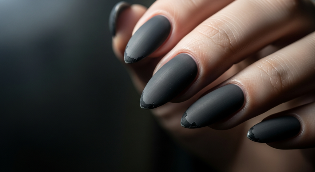 Use matte black, charcoal, or deep plum shades. Add subtle metallic accents for contrast and depth.