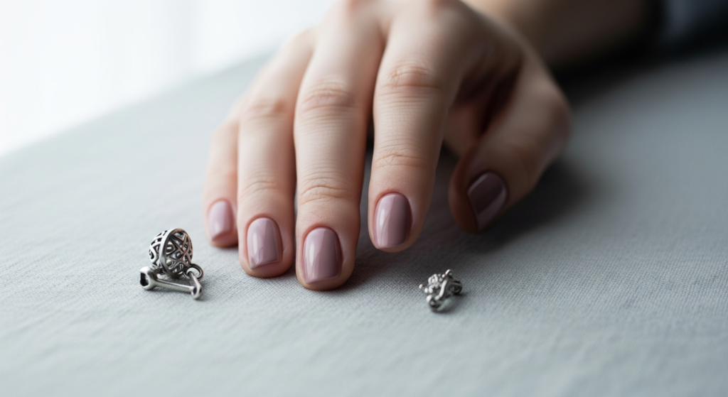 Dusty mauve gel nails pair most beautifully with silver jewellery, cool-toned neutrals in the wardrobe, and the clean, considered makeup palettes of the quiet luxury aesthetic.