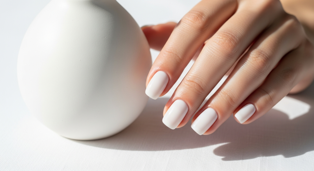 Styling Tip: Opaque white gel requires precision in application — thin, even coats are essential to prevent streaking, bubbling, or uneven opacity. Apply three thin coats rather than two thick ones for the smoothest, most even white finish. A high-gloss top coat gives white nails their most striking, clean-line quality; a satin finish creates a more minimal, editorial result. Keep the nail shape clean and precise — white nails on an uneven or poorly shaped nail are less forgiving than lighter, sheerer colours.