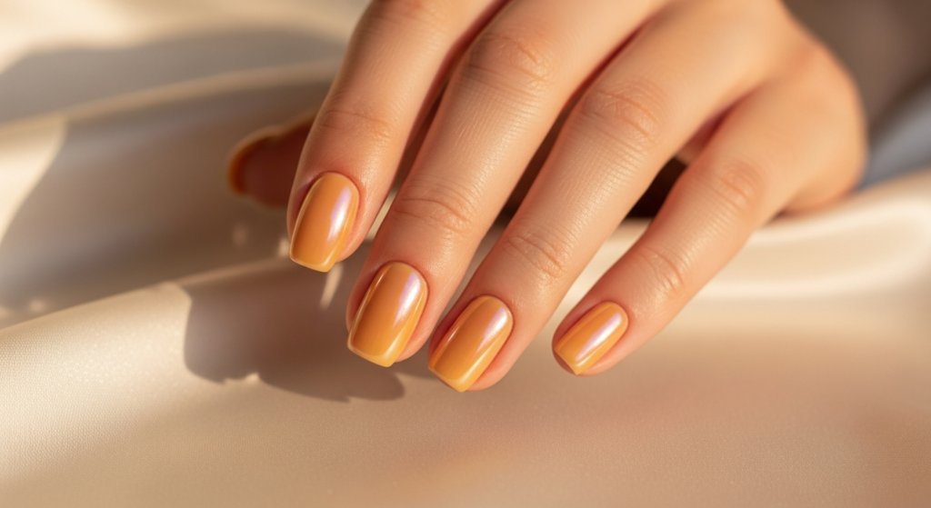 Styling Tip: The glazed pearl effect is achieved by applying a fine pearl or chrome powder over a sheer, warm nude gel base before sealing with a high-gloss top coat. The specific warmth of the base determines the final tone of the glaze — a peachy nude base creates a warm, honey-glazed quality; a pink-nude base creates a cooler, more iridescent pearl quality; a caramel base creates a deeply golden, richly warm glaze. All three variations are beautiful — choose based on your skin tone and the overall aesthetic you are working toward.