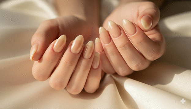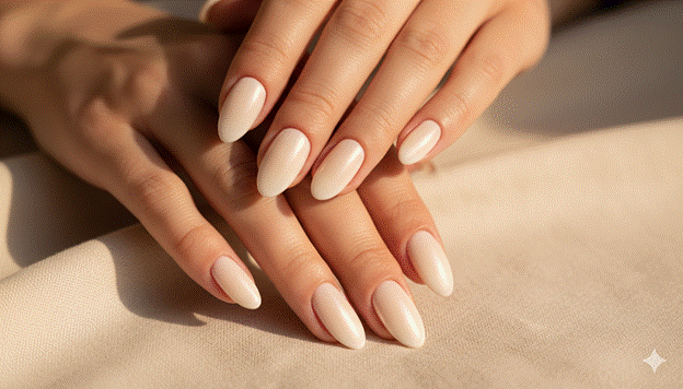 The glazed oat milk almond is the nail inspo almond style that most perfectly and most warmly captures the 2025 beauty moment’s defining aesthetic character — a barely-there, warm ivory-cream in a glass-smooth glazed finish on the almond’s graceful taper, creating a nail of extraordinary warm luminosity that appears to generate its own gentle, amber-tinted light from within. It is the most simultaneously simple and the most genuinely beautiful nail available in the current landscape.