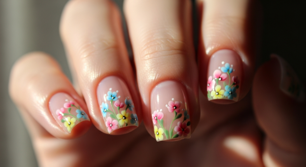 9. Soft Floral Accent Nails