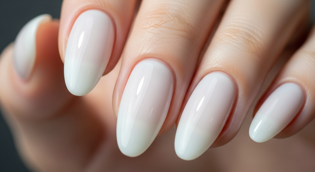 Milky white nails are a staple for a fresh, minimalist aesthetic that complements every outfit.