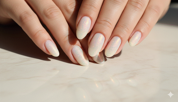 Styling Tip: Build the milky opalescent unhas claras in two product stages for the most complete and the most convincingly beautiful opalescent result. First, apply a warm milky white or cream gel in two fully cured coats that are slightly opaque — not fully opaque, which would eliminate the opalescent depth, but sufficiently opaque to create a warm, luminous foundation. Second, apply an opalescent or multi-chrome shimmer top coat — specifically formulated to shift between pink, gold, and aqua — in a single, even coat over the cured milky base. The milky base’s warmth enriches all three of the shimmer’s colour shifts, creating a more complex and more specifically beautiful opalescent result than the same shimmer applied over a cool or clear base.