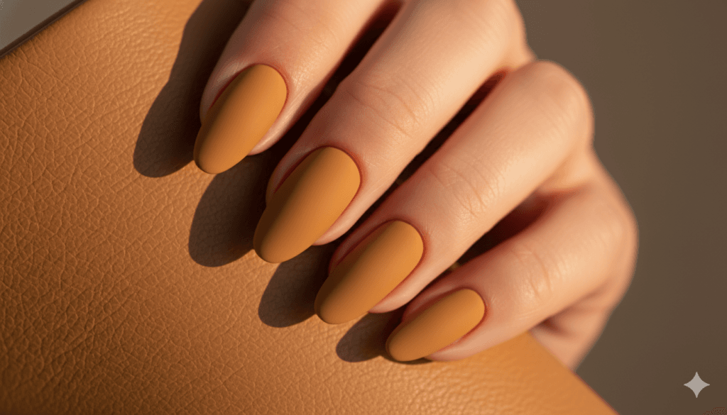 Styling Tip: Mustard yellow matte nails are most beautifully worn on a medium almond or short coffin nail shape — the slightly elongated silhouette of the almond or the clean geometric quality of the coffin both allow the matte colour to be seen in its full richness without the distraction of an extreme nail shape. Pair with warm autumn wardrobe tones: a camel coat, brown leather boots, or a forest green knit creates the most specifically beautiful and most colour-cohesive aesthetic relationship with the mustard matte. Avoid pairing mustard nails with cool-toned or blue-toned outfits — the warm bias of the mustard creates a slightly discordant relationship with cooler palettes.