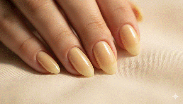 Styling Tip: The glazed butter yellow nail achieves its most beautiful result when the base gel is a sheer, warm yellow-ivory in a jelly or semi-sheer formulation rather than an opaque yellow — the translucency of the base creates the warm, inner-glow quality that is the glazed nail aesthetic’s defining characteristic. Apply in four thin layers over a clear base to build the colour depth gradually while maintaining the translucency at each layer. A very light pass of a warm champagne chrome powder over the fully cured yellow base adds the glazed luminosity that transforms it from a pale yellow gel nail into a specifically beautiful butter yellow glaze.