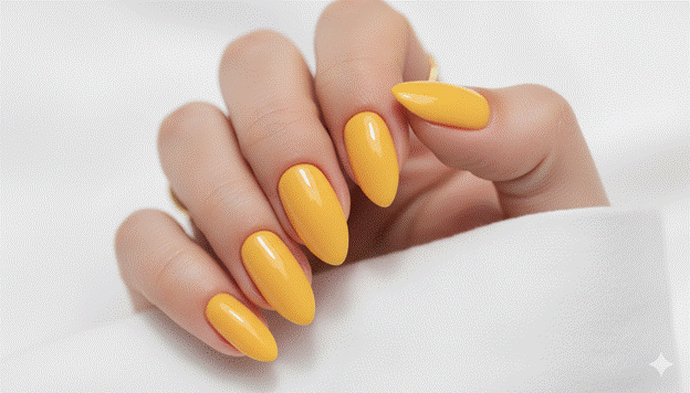 Yellow nails work beautifully on every nail shape, though different shapes create different aesthetic emphases. The almond shape creates the most universally flattering and the most inherently elegant result for yellow nails — the curved tip softens the energy of a vivid colour and creates a nail of feminine delicacy that complements yellow’s joyful quality without amplifying its intensity. The oval shape creates a similar softening effect and is the most practically suitable option for everyday wear. The coffin or ballerina shape creates the most fashion-forward and most specifically directional result with yellow nails, particularly in more saturated or neon formulations. The square nail with yellow creates the most graphic, most architecturally precise result — particularly effective with mustard matte and other more sophisticated yellow interpretations.